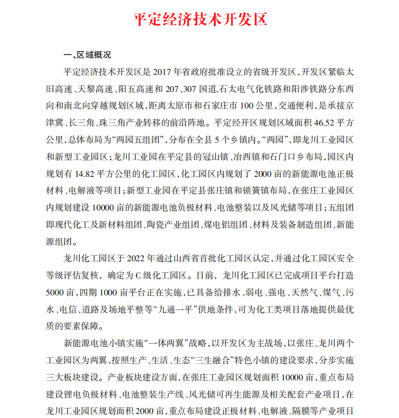 平定经济技术开发区概况
